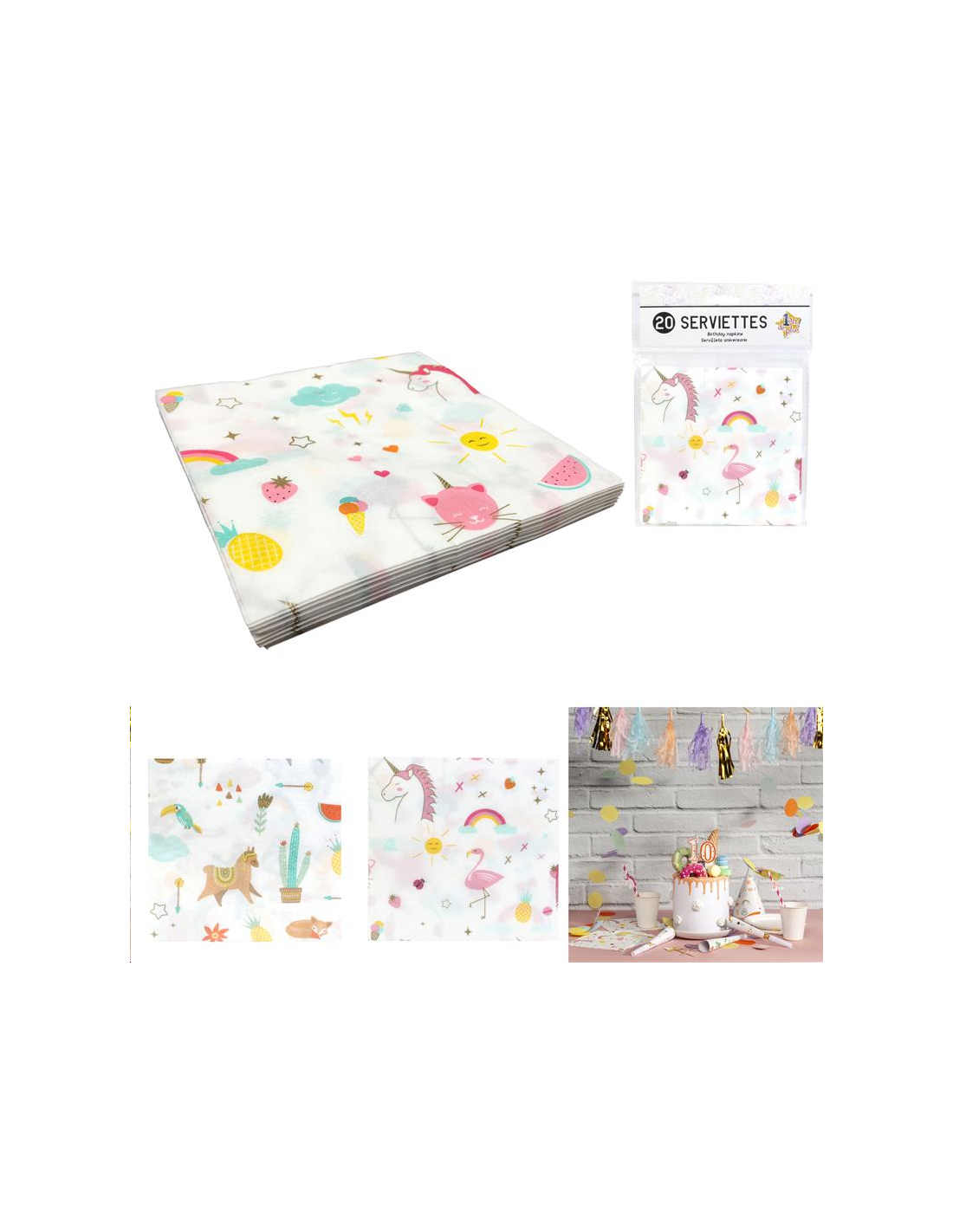 SERVIETTE PAPIER ANNIVERSAIRE FANTAISIE X20 MODELES FILLES ET GARCONS ASSORTIS - PRIX NET