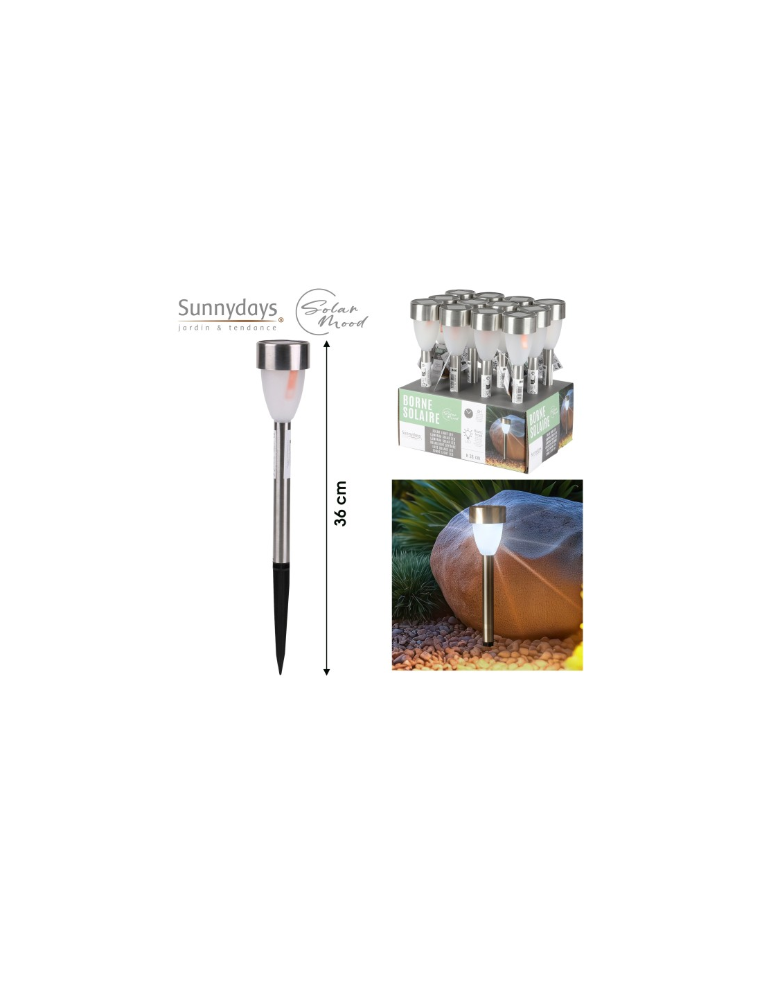 LAMPE SOLAIRE EN INOX H36CM