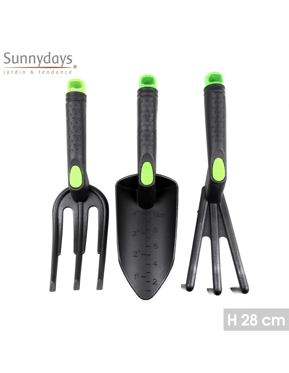 OUTIL DE JARDIN ASSORTIS PELLE / RATEAU ET FOURCHE H28CM