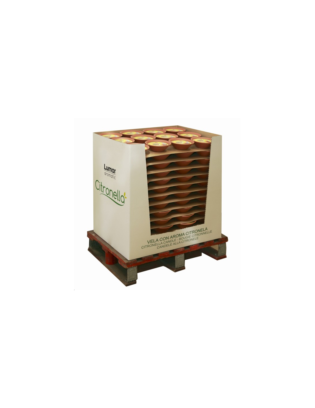 1/2 PALETTE de 132 BOUGIES à la citronnelle en pot en terre cuite terracota de Ø 18 cm - PRIX NET