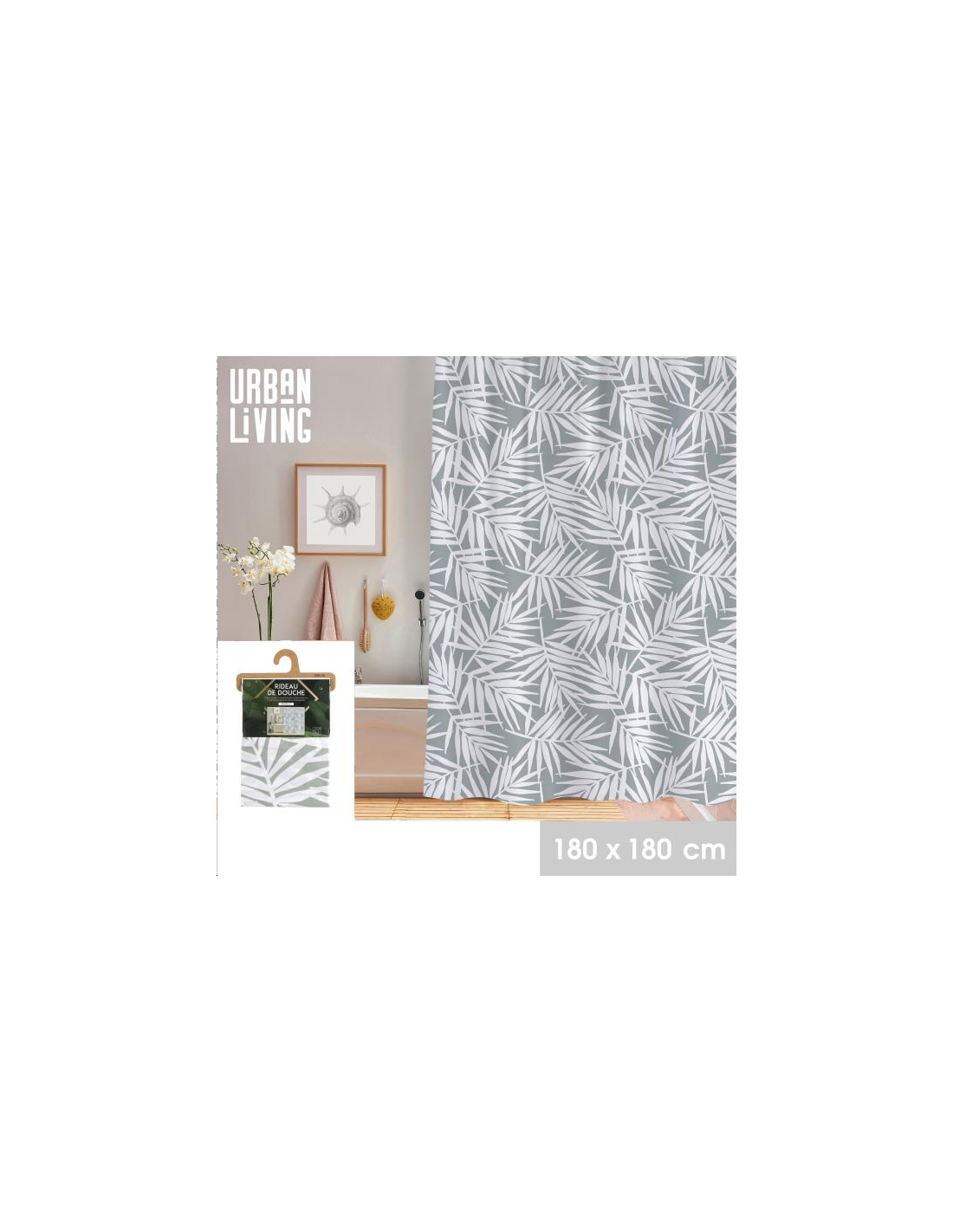 RIDEAU DE DOUCHE EN PLASTIQUE AVEC 12 ANNEAUX DESIGN JUNGLE 180X180CM