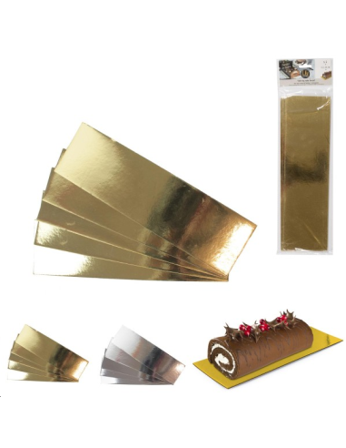 PLATEAUX A DESSERT X5PCS - ASSORT. OR ET ARGENT (35X10CM)