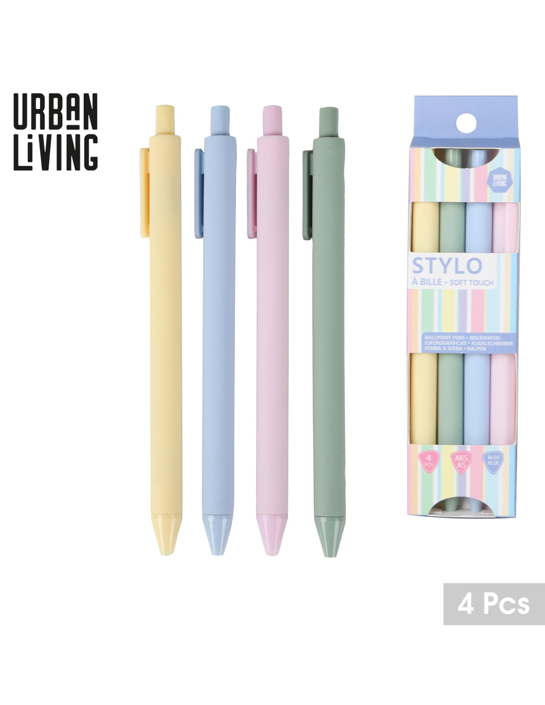 Stylos Billes SOFT TOUCH Pastels encre bleue x4 pcs - 4 couleurs assorties