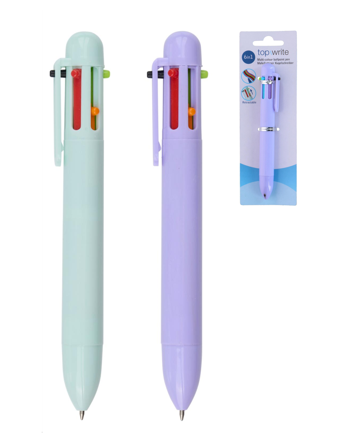 STYLO A BILLE 6 COULEURS EN 1 - 1 pc - 2 coul. assort