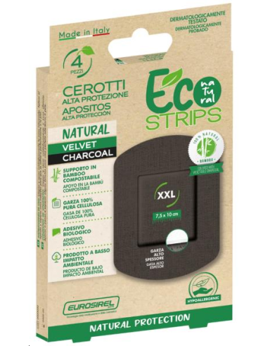 PANSEMENTS XXL CHARBON VEGETAL EN FIBRE DE BAMBOU 100% NATUREL COMPOSTABLE (7.5x10 cm) - 4 PCS