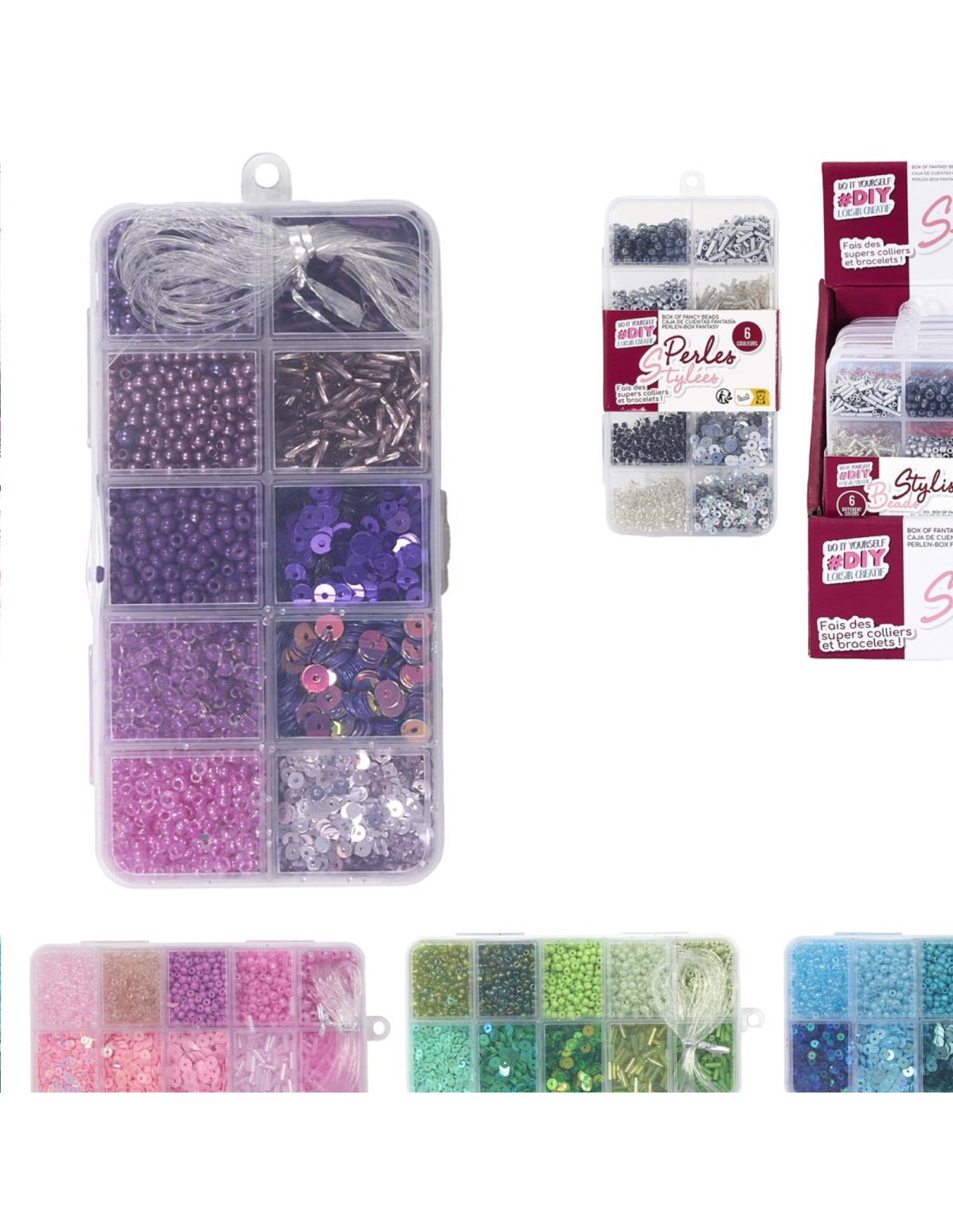PERLES FANTAISIES - 6 couleurs assorties - display de 6