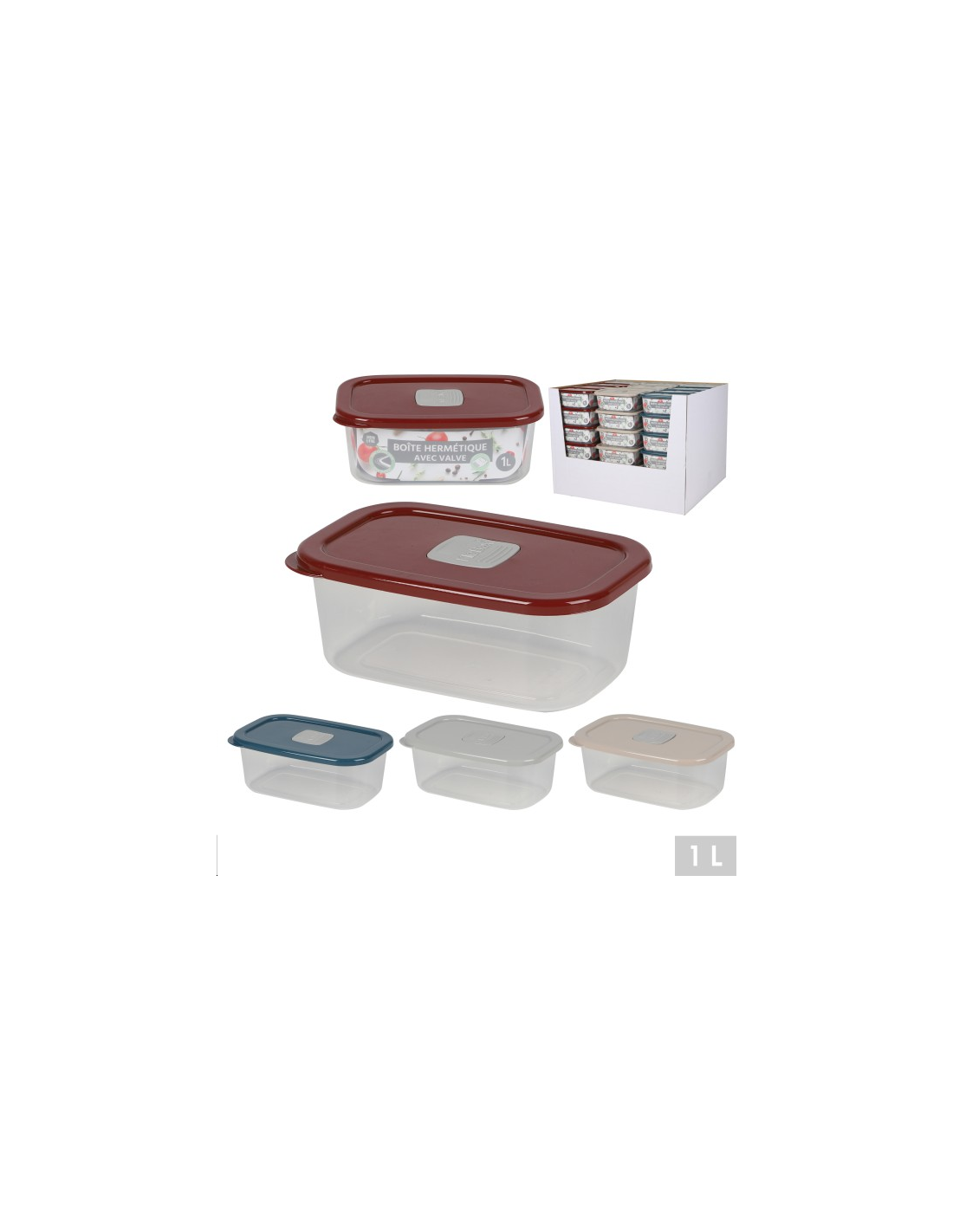 Nouveau PLASTIQUE ALIMENTAIRE BOITE HERMETIQUE RECTANGULAIRE 1L 17622 BOITE hermetique RECT. 1 L - MICRO ONDE & LAVE-VAISSELLE -SANS BPA- (20.5 x 13.7 x 5.3 cm) - 4 coul.assort Voir